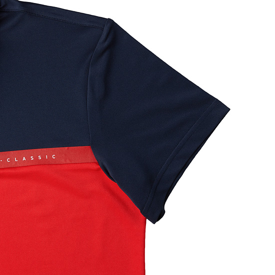 - 몸판 투톤 배색으로 스포티한 포인트를 준 남성 피케 티셔츠.