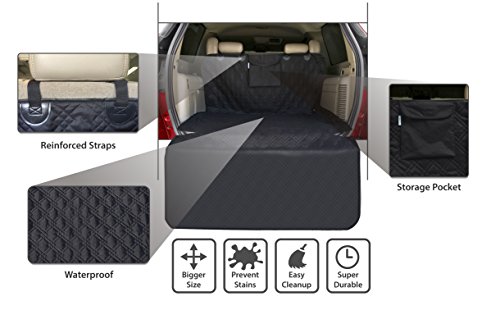 Studio : Brooke's Best Publisher : Brooke's Best Binding : Misc. Product Description Looking for an SUV Cargo Liner that can protect the entire cargo area and is also comfortable for your dog? Why our customers love Brooke's Best SUV Cargo Liner: ALL MID AND FULL SUVs cargo cover has a total padded surface area of 52" wide (132.08cm) wide by 71" long (108.34 cm) long and a bumper flap of 20" (50.8 cm). LARGE POCKET WITH VELCRO ENCLOSURE storing all your items. Conveniently store dog treats, toys, leash, tools or whatever you need to keep out of the way. Large pocket measures 13" (33.02 cm) x 12" (30.48 cm). REUSABLE CARRY BAG INCLUDED.This premium SUV Cargo Liner comes with a matching, reusable drawstring carry bag. When not needed, you can easily store it in the water resistant, reusable carry bag. NON-SLIP BACKINGA non-slip rubberized backing prevents slipping and holds the cargo cover in place. PADDEDLuxury, double diamond quilting with 140 gram cotton filling ensures maximum comfort and beauty. CLOSE REINFORCED HEAD REST STRAPSTwo heavy duty, strong and adjustable head rest straps measure 26" long to easily slip over your back seat headrests. MACHINE WASHABLEThe material is a black, easy to clean, waterproof, 600D Oxford polyester fabric. It has a non-slip backing to keep the SUV seat cover in place. Fully machine washable. HIGH QUALITY, WELL-MADE AND LIGHTWEIGHT will love the high quality material. It's strong but still lightweight so it can be installed quickly and then folded up and stored after use. RISK FREE 100% MONEY BACK GUARANTEEYou can peace of mind purchasing any Brooke's Best product. is also perfect for outdoor activities. Need a picnic blanket? The Brooke's Best SUV Cargo Liner does double duty! Use it for family picnics, barbecues, camping and tailgating and more. "Add to Cart" button 0