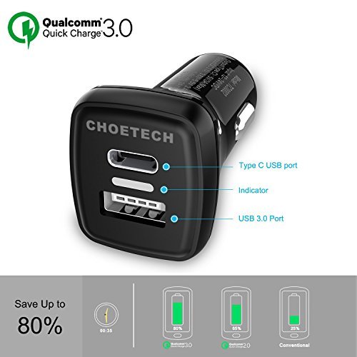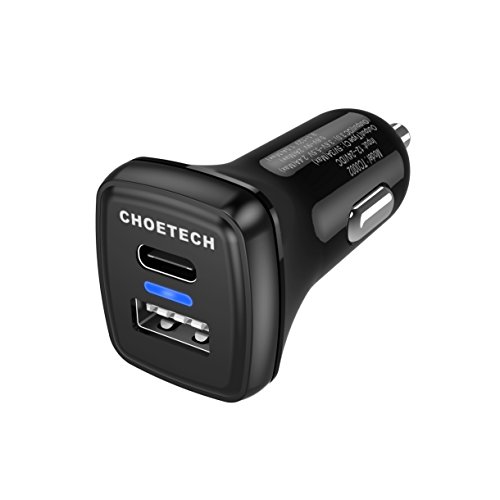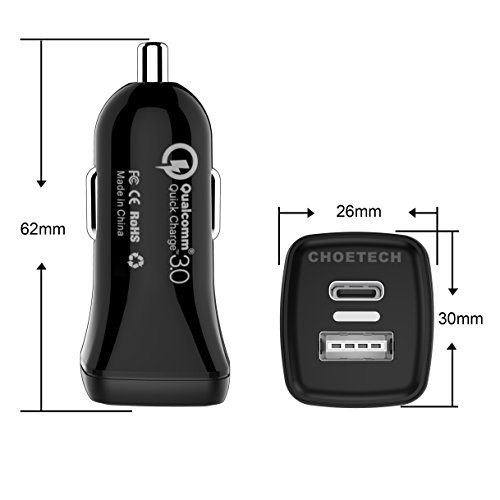USB C Car Charger, CHOETECH 33W USB Type C Car Charger with Quick Charge 3.0 in Dual USB Car Charger for Galaxy S8, S8 plus, S7 Edge, Google Pixel, Pixel XL, LG G6, G5, HTC 10, Nexus 6P, 5X and More