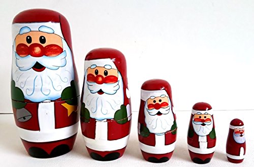 -. Title : Christmas Holiday Set of 5 Wooden Nesting Dolls Santa Claus - Holiday Home Decor