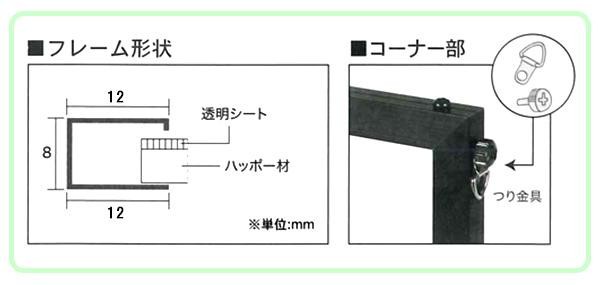 ポスター、POP、写真、版画等、幅広く利用できる、軽くて丈夫なアルミフレームです。