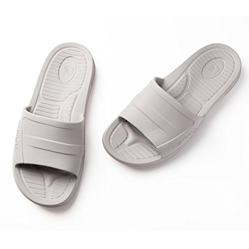 KENROLL Men's Bathroom Shower Anti Skid Sandals Slippers Non-slip EVA Flat Soles Flip Flops (8.5-9, Grey)