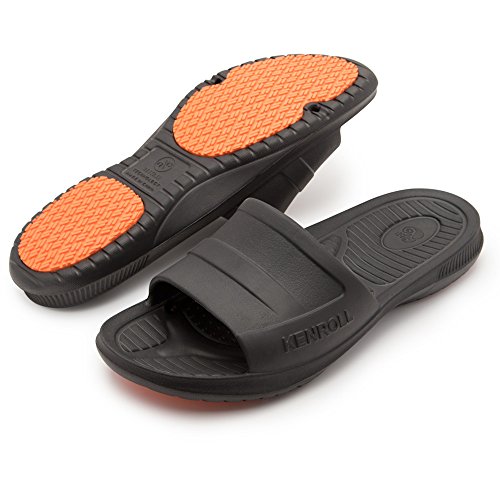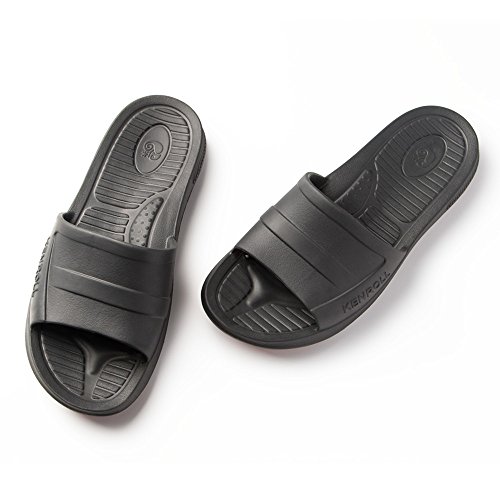 KENROLL Men's Bathroom Shower Anti Skid Sandals Slippers Non-slip EVA Flat Soles Flip Flops (9.5-10, Black)