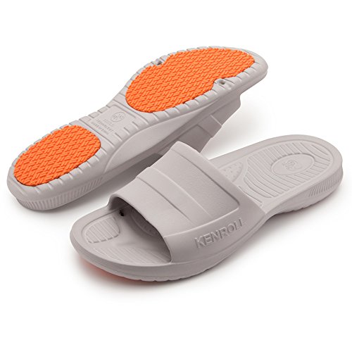 KENROLL Men's Bathroom Shower Anti Skid Sandals Slippers Non-slip EVA Flat Soles Flip Flops (9.5-10, Grey)