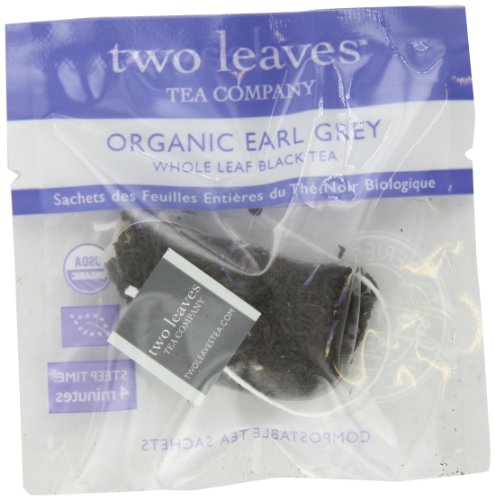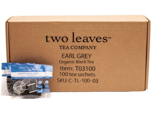 -. Binding : Grocery -. Brand : Two Leaves Tea Company -. EAN : 0894058000835 -. Feature : Whole Leaf Black Tea Sachets / Origin: India / Caffeine: Some buzz, 1/2 cup coffee / Steep Time: 4 Minutes / 100 tea sachets of Organic Earl Grey Black Tea / Classic robust flavor with a citrus finish / Full caffeine;less than coffee / Premium organic Ceylon tea with a hint of bergamot / Mountain grown in Sri Lanka -. Label : Two Leaves Tea Company -. Manufacturer : Two Leaves Tea Company -. Model : T03100 -. MPN : T03100 -. NumberOfItems : 1 -. PackageQuantity : 1 -. PartNumber : T03100 -. ProductGroup : Grocery -. ProductTypeName : GROCERY -. Publisher : Two Leaves Tea Company -. ReleaseDate : 2006-04-19 -. Size : 100 count -. Studio : Two Leaves Tea Company -. Title : Two Leaves Tea Company Organic Earl Grey Black Tea, 100-Count (Packaging artwork may vary) -. UPC : 894058000835