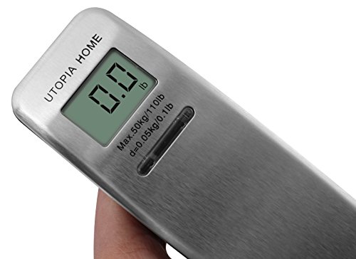 -. Brand : Utopia Home -. Color : Silver -. Department : unisex-adult (lage only) -. EAN : 0754207393570 -. Feature : Easy to read with a capacity of 50 kilograms/110 pounds and graduation of 50 grams/0.1 pounds / The stainless steel top cover bears the wear and tear caused while travelling / Tare and auto-off functions prevents battery wastage / Displays low battery and overload indication in order to alert the user / In order to clean the scale, gently wipe it with a damp cloth; do not immerse in water in order to ensure longevity -. Model : Utopia Home -. ProductGroup : Apparel -. ProductTypeName : LAGE -. Size : Medium -. Title : Digital Lage Scale, Metal Hook, Weighs up to 110 lbs - Utopia Home -. UPC : 754207393570