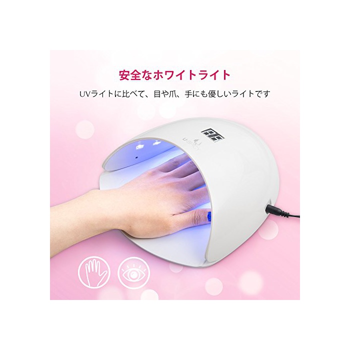 안심인 화이트 라이트: UV라이트에 비해,눈(째)에는 물론,손톱,손에 상냥한 백색LED라이트입니다.UV라이트 보다 햇볕에 타는 가능성이 낮다