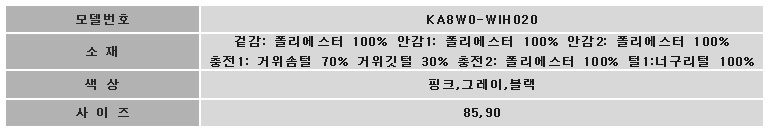 -다운제품 특성상 착용 및 세탁 후 다운이 빠질 수 있으나, 불량은 아니오니 다운을 털어서 착용하시기 바랍니다