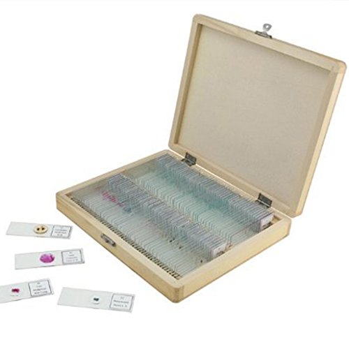 -. Title : lieomo Prepared Microscope Slides 100Pcs Basic Biological Science Education Toys With Wooden Case