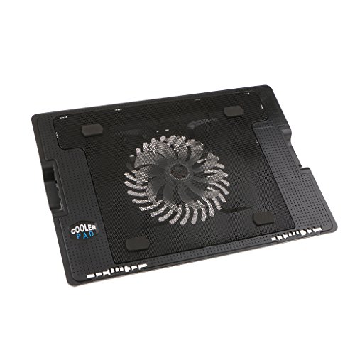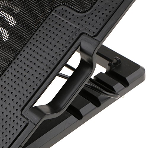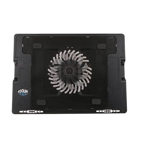 -. Feature : Ultra Quiet built-in fans: allow for maximum airflow and cooling while you work or play,fan is 14cm. / Dual USB Interface: at the top of the middle cooling pad set USB interface, at the bottom of the design adopted the anti-skid pads, surface increase / Ergonomics Design: 6 adjustment levels,unique design of tilt scheduling and comfortable elevation for notebook radiator. Support 14-17 inch notebook. / Ultra-Portable: portable,and light weight allowing you to protect your PC wherever you go. / USB Powered -This laptop cooling pad is conveniently powered by the USB port on your computer, with no power adapter needed.