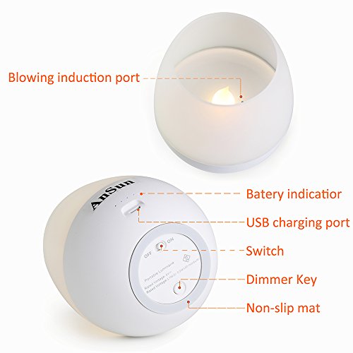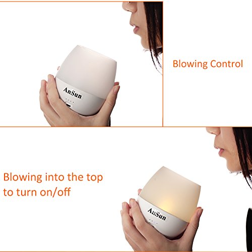 - Blowing Control and Dimmable: Simply blowing into the top to turn the light on/off, no need to press any button. Special hands-free breath-activated night light. 3-levels of adjustable brightness with memory function makes it more cool and easier to use