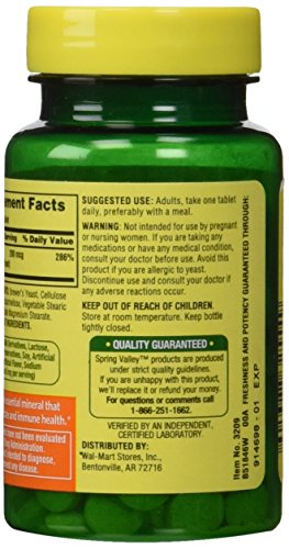 -. Binding : Health and Beauty -. Brand : Spring Valley -. Label : Spring Valley -. Manufacturer : Spring Valley -. ProductGroup : Health and Beauty -. ProductTypeName : HEALTH_PERSONAL_CARE -. Publisher : Spring Valley -. Studio : Spring Valley -. Title : Spring Valley Selenium 200 Mcg