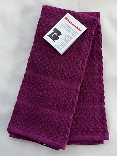 KitchenAid Kitchen Towels 100% cotton Textured Checkerboard Purple Plum 2 Pack