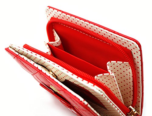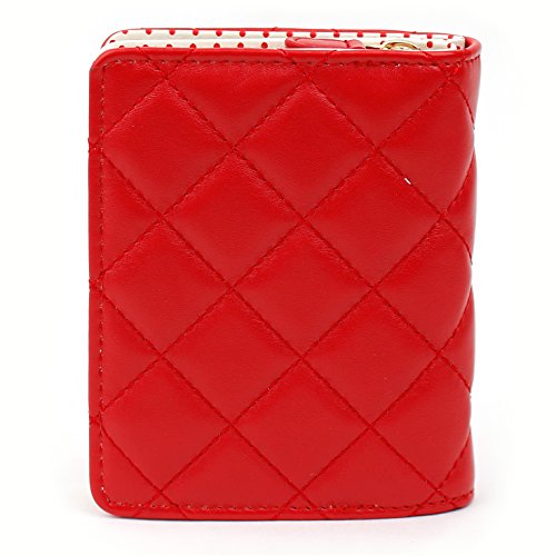 Zipper and Button Closure Bifold Holder with Soft Red Material