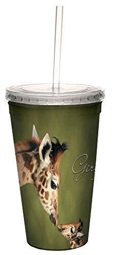 Tree-Free Greetings 35812 Parent and Child Giraffe Double-Walled Cool Cup with Reusable Straw, 16-Ounce