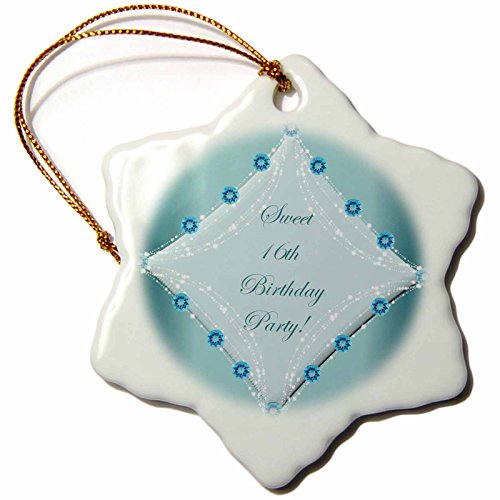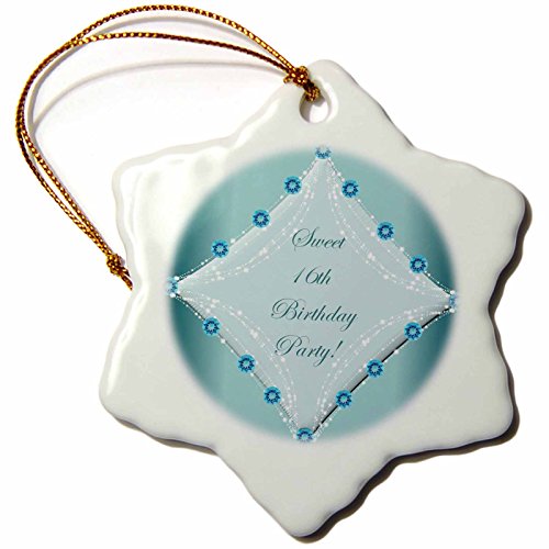 3dRose orn_33039_1 Sweet 16 Snowflake Porcelain Ornament, 3-Inch