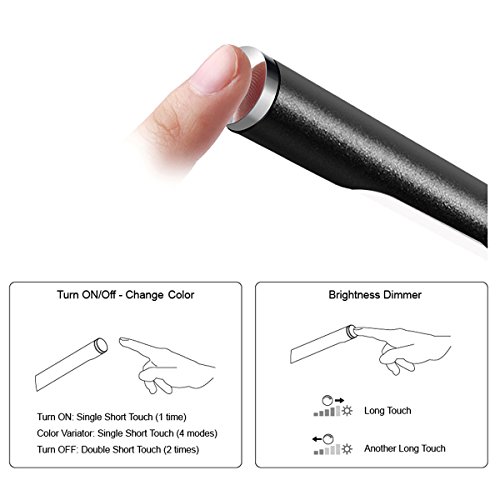 - 2 in 1 Touch controls to power on/off and adjust the light intensity gradually without levels: endless possible settings, the last brightness setting will be stored in memory for your next use. Temperature of light : 4 modes from warm white to cold white variable.