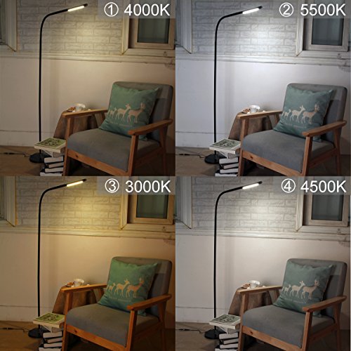Byingo LED Reading and Crafting Floor Lamp Modern Simplicity Style 4 Color Modes 500 Lumens Stepless Dimming Fully Adjustable Long Arm Touch Sensor Switch, for Sofa/Desk Reading, Living Room, Bedroom