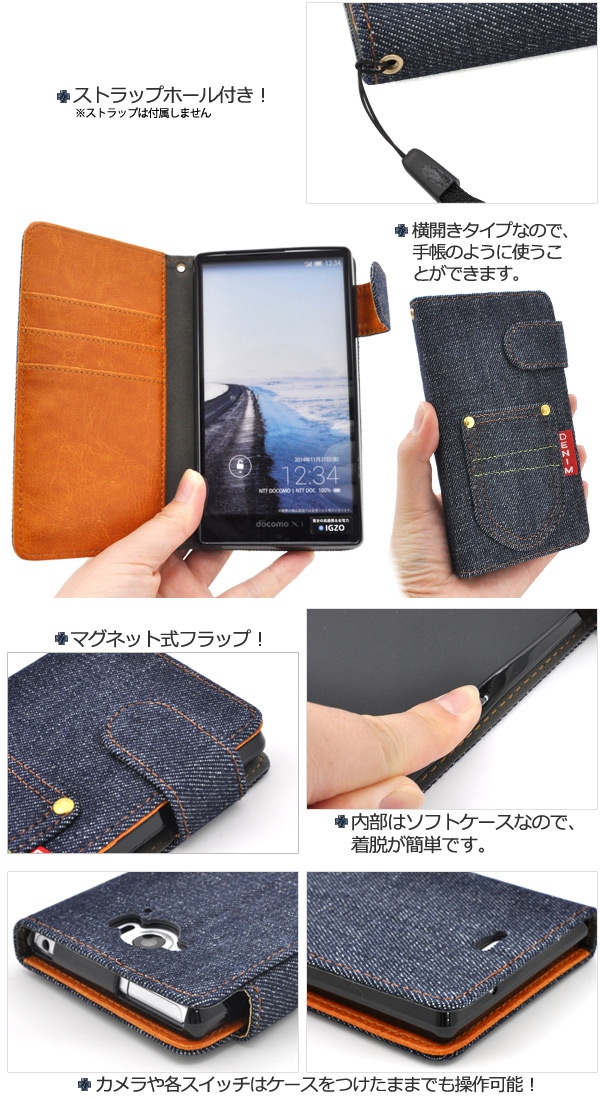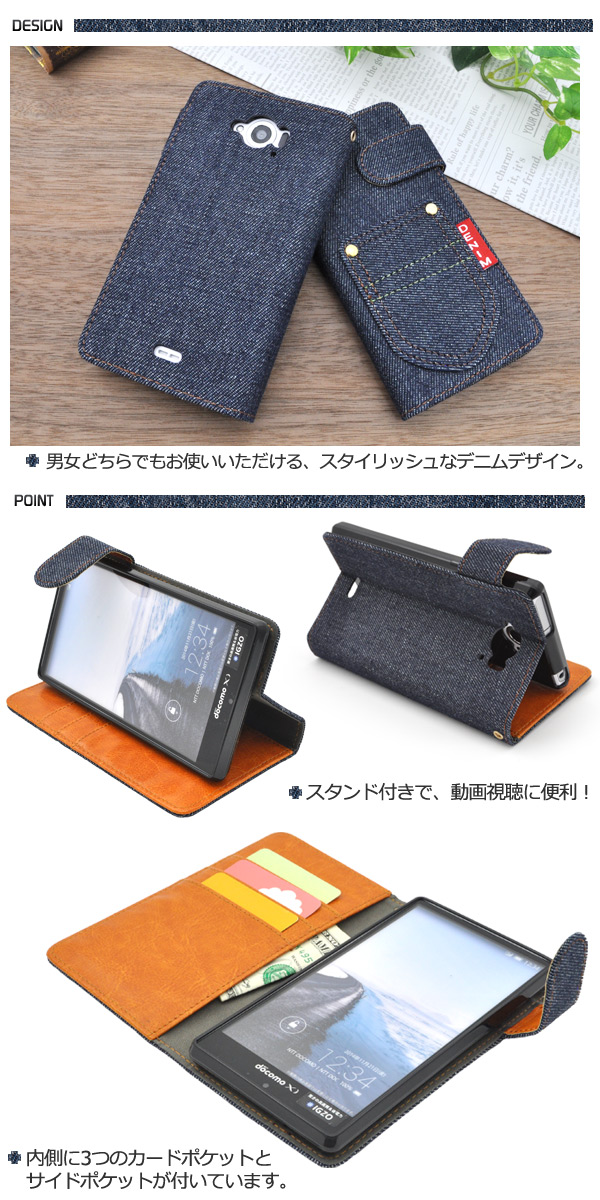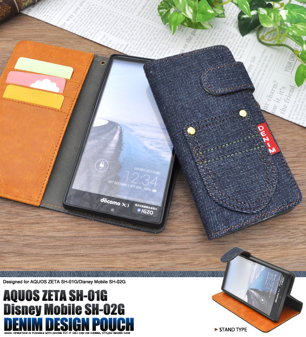 デニムデザインのAQUOS ZETA SH-01G/Disney Mobile SH-02G用スタンドケースポーチ。