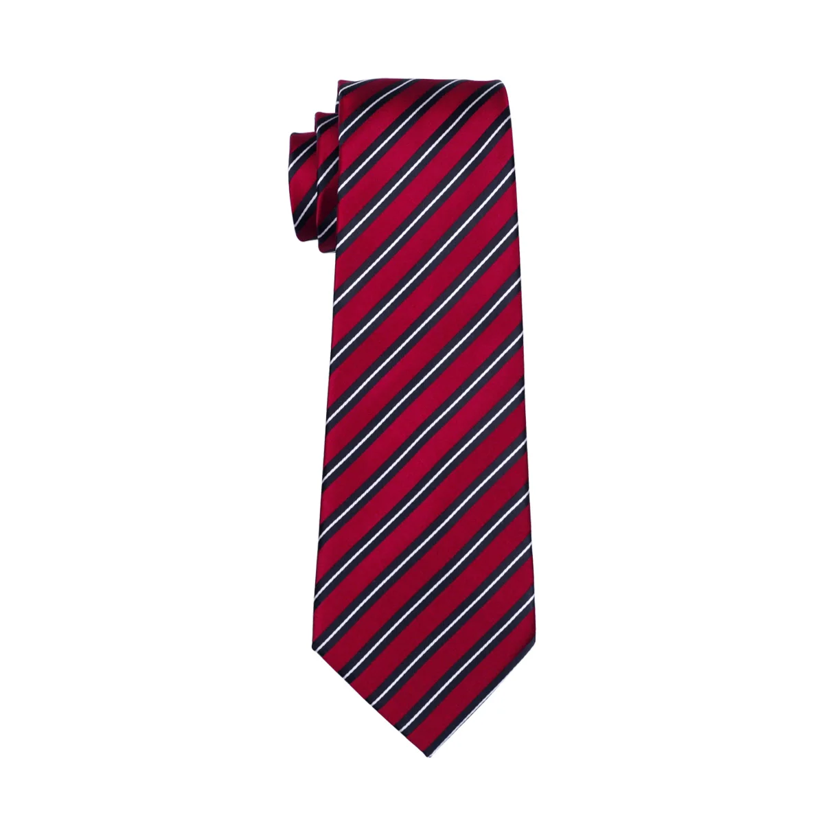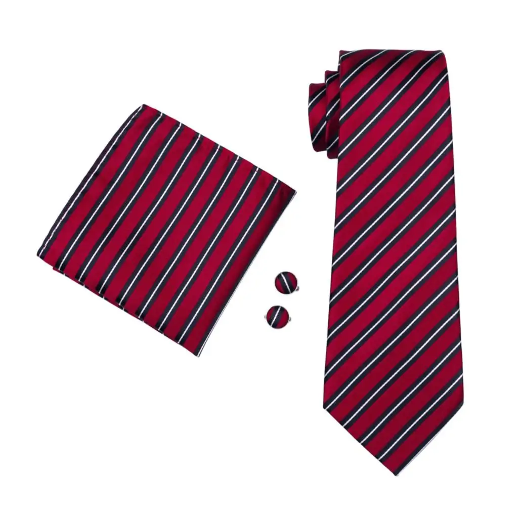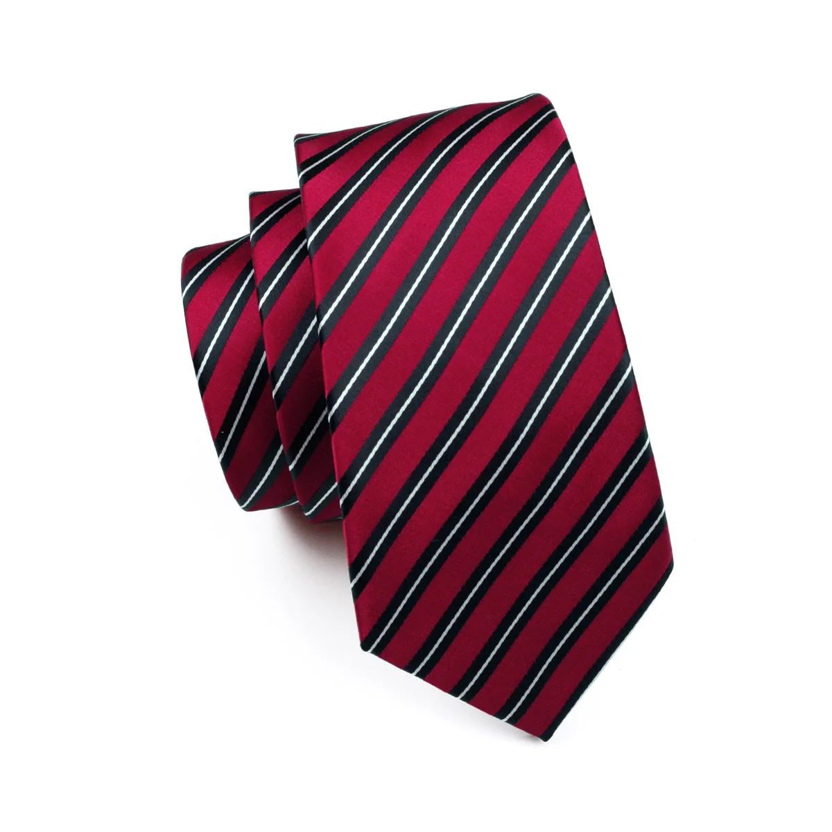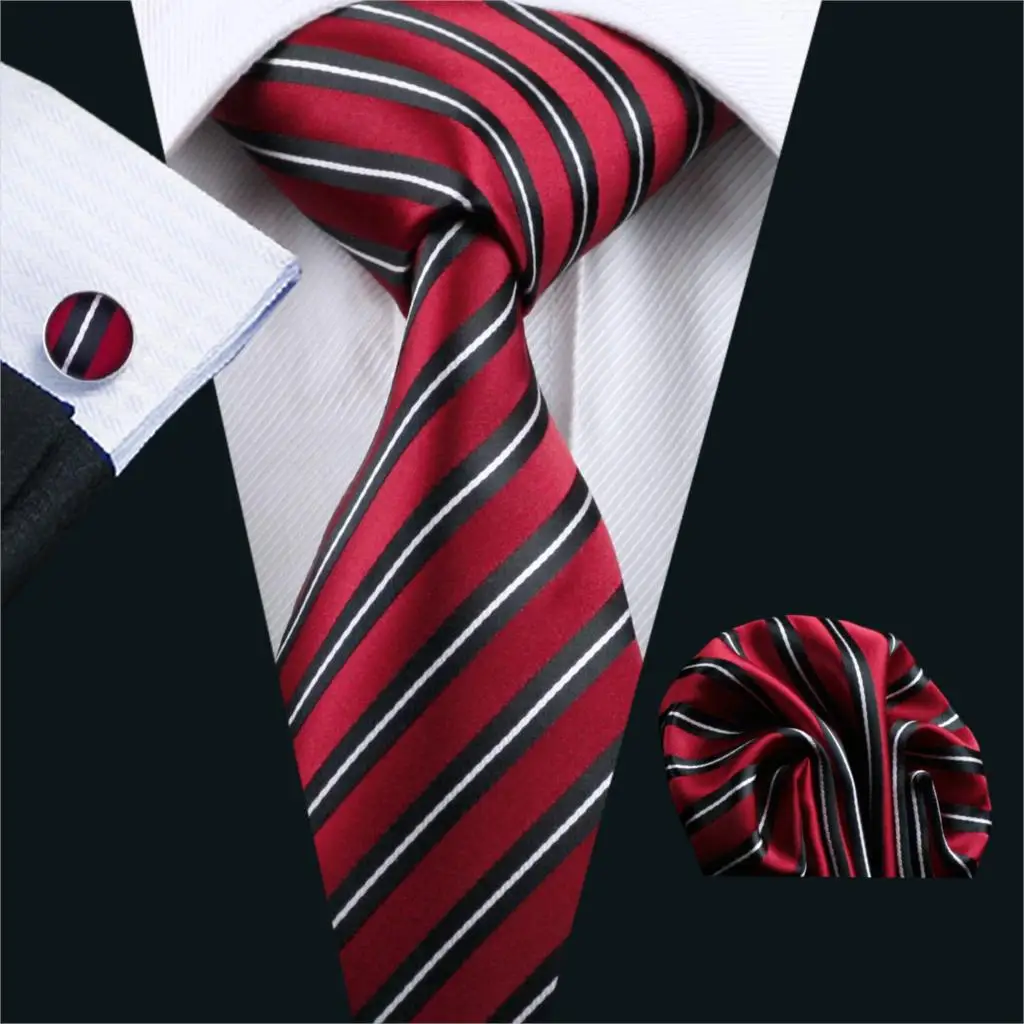 | [해외]FA-322 남성 넥타이 레드 & 블랙 스트라이프 실크 자카드 직물 클래식 넥타이 손수건 커프스 세트 비즈니스 웨딩 파티 무료 배송 |