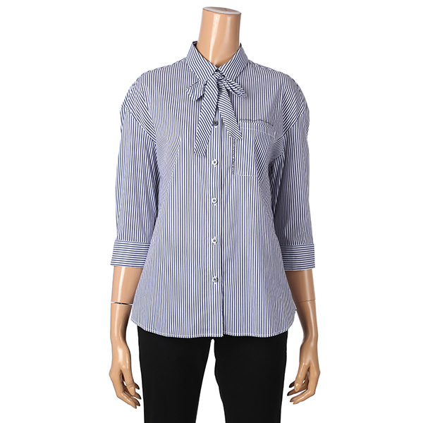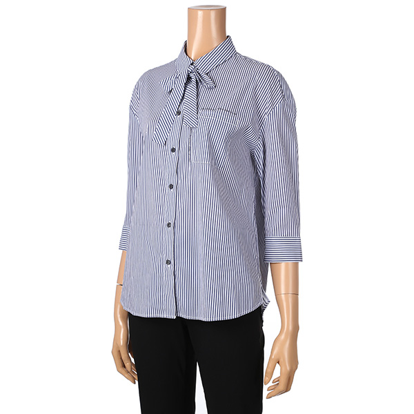 은은한 핀스트라이프 패턴이 적용된 소재를 사용한 루즈핏의 셔츠입니다. 허리 라인에 맞춰 크롭된 기장감에 브이넥 타입으로 변형된 네크라인 디자인으로 포인트를 주었습니다. 가슴 부분에 아웃 포켓이 디자인되어 있으며. 커프스 라인 여밈 디테일로 여성스러운 감성을 더했습니다.