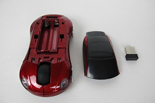-. Feature : Wireless silent compact mouse in the shape of a Porsche car / Easily connects with your computer, laptop, and other devices with included USB adapter / Powered by 2xAAA batteries (not included) / Max 1600 cpi resolution / Frequency: 2.4GHz, Transmission Range: 10m
