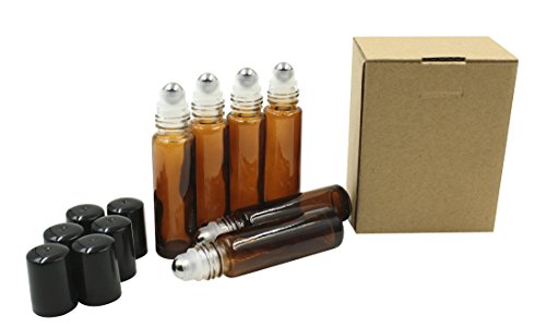 [Product Information]- Elegant, economical, convenient and refillable 5ml amber color glass roll on bottles set of 6