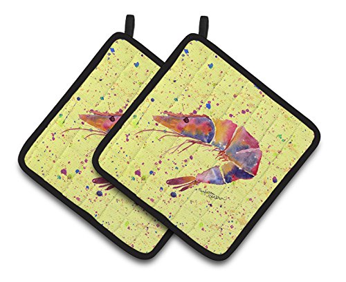 Caroline's Treasures Shrimp Pair of Pot Holders 8454PTHD, 7.5HX7.5W, Multicolor