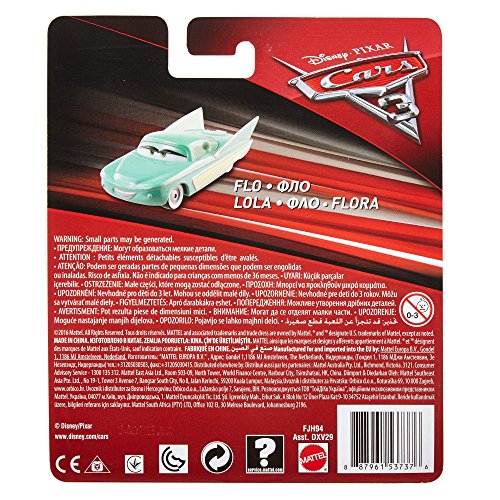 -. Binding : Toy -. Brand : Disney -. EAN : 0887961537376 -. Feature : Enchanting die-cast collection gives kids the chance to reconnect with their favorite Disney/Pixar Cars characters / Vehicles are 1:55 scale die-cast / From grills to wheels, these little vehicles are authentically styled for realistic fun / Have a blast recreating fun racing scenes from all of the films / Collect them all! each sold separately -. IsAdultProduct : 0 -. Label : Mattel -. Manufacturer : Mattel -. Model : FJH94 -. MPN : FJH94 -. PackageQuantity : 1 -. PartNumber : FJH94 -. ProductGroup : Toy -. ProductTypeName : TOYS_AND_GAMES -. Publisher : Mattel -. Studio : Mattel -. Title : Disney/Pixar Cars 3 Flo Die-Cast Vehicle -. UPC : 887961537376 -. Warranty : 1 year warranty against manufacturer defects