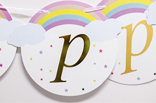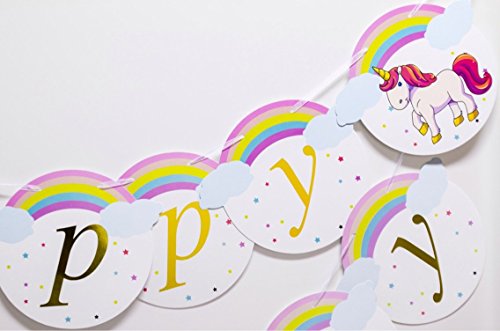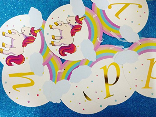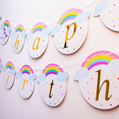 -. Binding : Toy -. Brand : Keira P.R.Ince -. EAN : 0715933323569 -. Feature : Large Magical Rainbow and Unicorn banner 15 Pennants with single letters that spell the phrase "HAPPY BIRTHDAY" and 2 unicorn accents / Product Color: Rainbow White & Gold Foiled. Approx 3 m in Length. Hassle Free Ready To Hang- Prestrung! / Product is made with card stock &sheer ribbons that hold individual letter cards on each strand / Perfect fantasy unicorn banner that will make your party special and have your guests talking -. IsAdultProduct : 0 -. Label : Keira P.R.Ince -. Manufacturer : Keira P.R.Ince -. ProductGroup : Toy -. ProductTypeName : TOYS_AND_GAMES -. Publisher : Keira P.R.Ince -. Studio : Keira P.R.Ince -. Title : Keira P.R.Ince Happy Birthday Banner, Magical Rainbow and Unicorn Party Supplies -. UPC : 715933323569