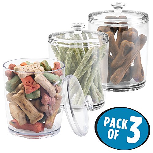 mDesign Pet Storage Jar with Lid for Dog Food, Treats - Pack of 3, Medium, Clear