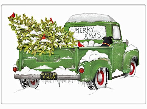 Vintage Green Christmas Tree Truck 100% Cotton Flour Sack Dish Tea Towel - Mary Lake Thompson 30" x 30"