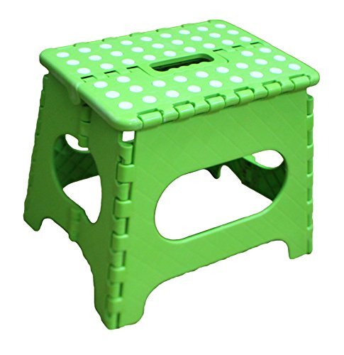 -. Feature : Approx 11 Inch Green with dots Ideal use for kids, also for adults / Great folding step stool for in the kitchen, bathroom, RV's and more. / Foldable step stool opens with one flip of the hand. / Handle for easy carrying, Approximately Assembly Dimension: 11" (L) x 9" (W) x 11'(H). / Adult Step Stool holds up to 350 lbs.