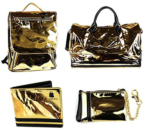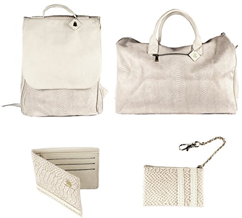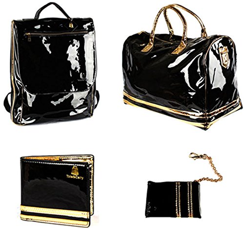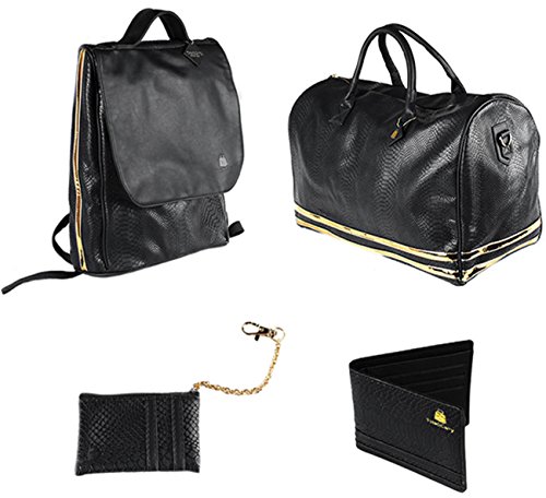 4 Pcs Luxury Duffle Bag Backpack Coin Purse Wallet Set Snake Grain Vegan Leather / Patent