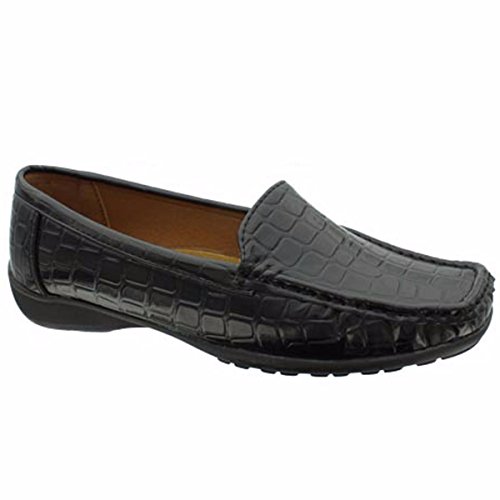 Binding : Apparel Product Description Step into all day comfort in these stylish croco loafers from Pierre Dumas. Hazel-7 loafers feature stylish croco vegan leather uppers, square toes and a classic moc-top silhouette. The comfort foot bed cushions your feet from heel to toe with additional support for your arch. Soft vegan leather lining for added comfort. Slight wedge heel measures 1". Durable, flexible outsole is ridged for added traction. Slip-on style for easy on and off. All man-made materials. 0