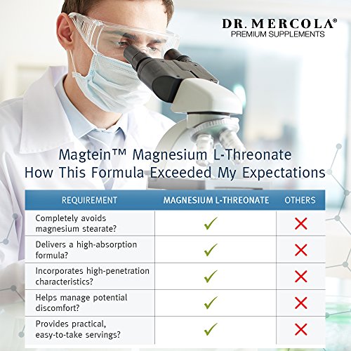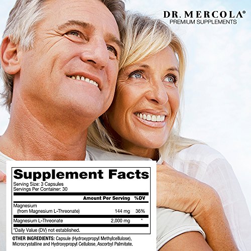 As you grow older, your body becomes less efficient and effective in absorbing important vitamins and minerals. Despite a healthy diet rich in fresh organic vegetables, you may still come up short in certain nutrients. One such mineral is Magnesium. Dr Mercola Magnesium L-Threonate is different! This magnesium supplement: ? Completely avoids magnesium stearate - Magnesium stearate is not a healthy source of magnesium to help boost your supply. ? Delivers a high-absorption formula - Magnesium L-Threonate was selected over other forms of magnesium due to its excellent absorptive characteristics. Plus, Magnesium L-Threonate is free from any genetically engineered (GE) ingredients. ? Incorporates high-penetration characteristics - Animal studies have shown how Magnesium L-Threonate uniquely crosses the blood-brain barrier and penetrates cell membranes. ? Takes advantage of high-tech encapsulation and delivery system ? Helps manage potential discomfort - Many forms of magnesium can cause unpleasant gastrointestinal discomfort. Magnesium L-Threonate is not a stool-softener and does not act as a laxative. ? Provides practical, easy-to-take servings - By taking 1g after lunch (or in the afternoon) and 1g at bedtime with plenty of water, it's quick and convenient to take. ? Is delivered by a reputable high-quality manufacturer - With its commitment to product innovation, the chosen manufacturer has been a trusted source for core functional ingredients since 1996.