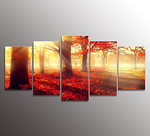 -. Title : youkuart kx9920Canvas Wall Art Daydream Red Morning in the Forest, Nature Painting USA Design for Home Decor, Modern Framed Set of 5
