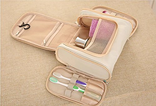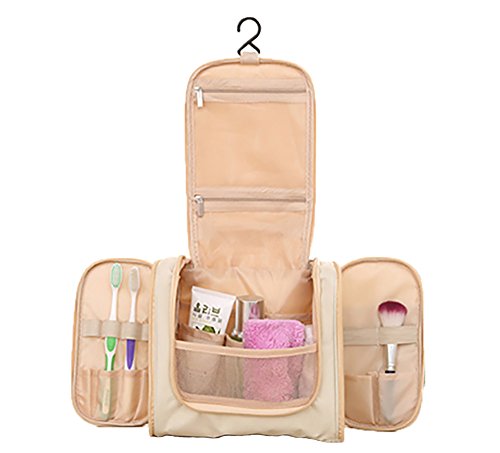 Yieune Toiletry Bag Hanging Make Up Travel Organizer Waterproof Overnight Gym Shaving Wash bag (Beige)
