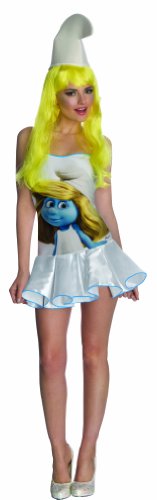 -. Binding : Apparel -. Brand : Secret Wishes -. ClothingSize : One Size -. Color : White -. Department : womens -. Feature : You'll look the smurfiest of all the smurfettes / Includes smurfette dress / Hat available separately / Available in sizes xs waist 22 to 24, small waist 25 to 26, medium waist 27 to 30 and large waist 34 inches / Officially licensed smurf costumes and accessories are available in sizes and styles for the entire family -. Genre : TV/Movie Characters -. IsAdultProduct : 0 -. Label : Secret Wishes -. Manufacturer : Secret Wishes -. MPN : 880860 -. PackageQuantity : 1 -. PartNumber : 880860 -. ProductGroup : Apparel -. ProductTypeName : ADULT_COSTUME -. Publisher : Secret Wishes -. Size : One Size -. Studio : Secret Wishes -. Title : The Smurfs Sexy Smurfette Costume Dress