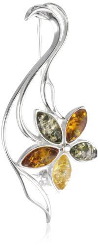 - Title : Multicolor Amber and Sterling Silver Flower Pin