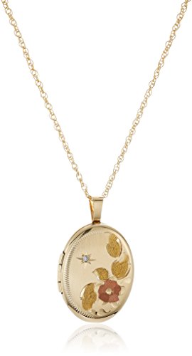 14k Gold-Filled Hand Engraved Oval Pendant with Genuine Diamond and Tricolor Locket Necklace, 18"