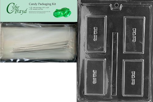 Cybrtrayd "Get Well" Business Card Chocolate Candy Mold with Packaging Bundle of 25 Cello Bags, 25 Silver Twist Ties and Chocolate Molding Instructions