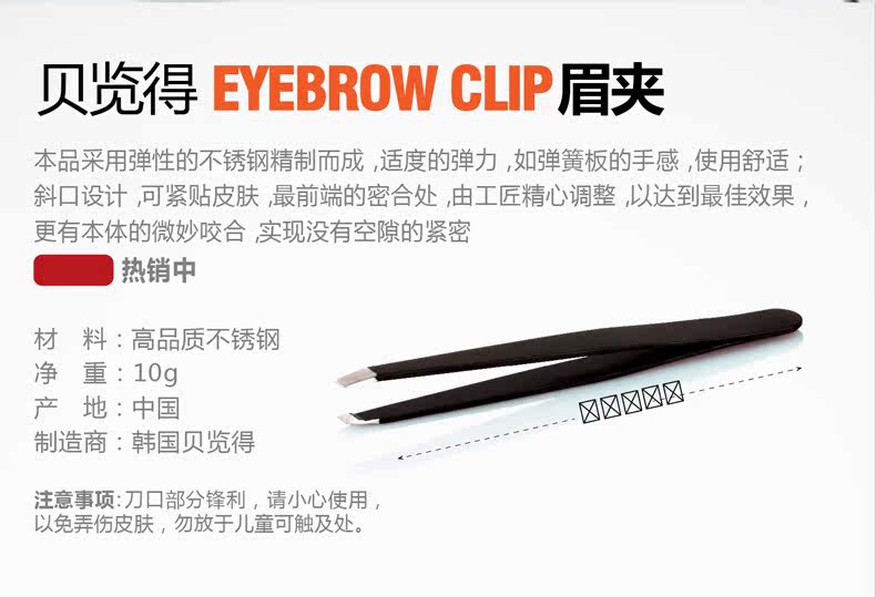 | ● | 使用方法 | 夹住一根眉毛,顺眉毛生长的方向拔下。刃口部分经过手工精心打磨,请小心使用。 | ||||||||