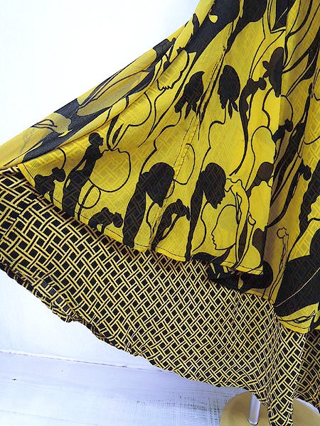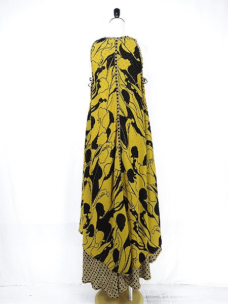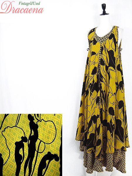 Ladies ブランド- カラー黄・黒 メール便不可 コンディション★★★ 素材レーヨン 表記サイズ- 実寸サイズ 着丈 137 cm 身幅 46 cm 肩幅 25 cm ※ウエスト・ヒップ以外は平置き採寸