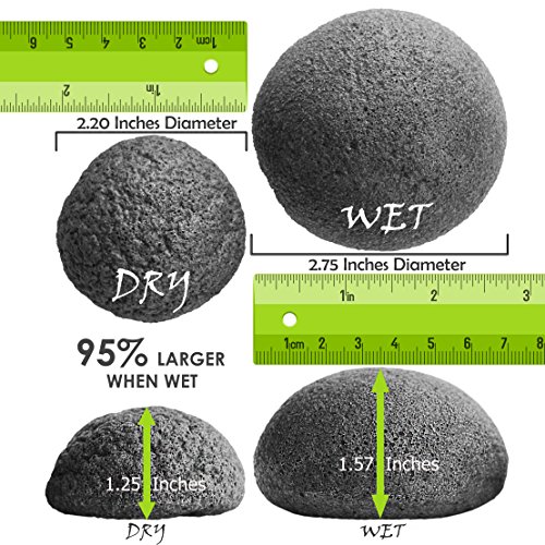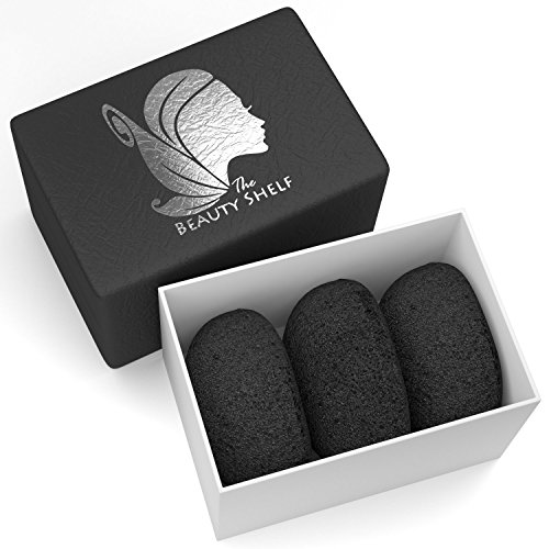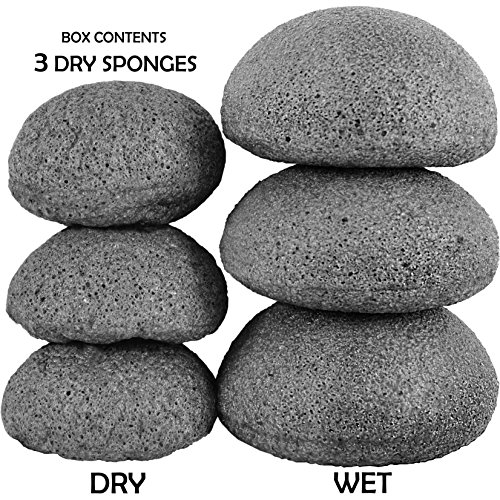 Konjac Sponge (3 Pack) Activated Bamboo Charcoal. Facial Cleansing & Exfoliating Beauty Sponges