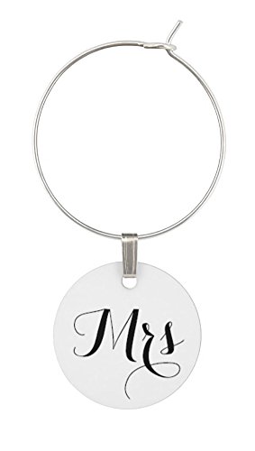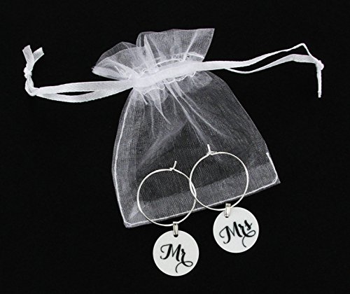 -. Binding : Kitchen -. Brand : TJ Formal -. Color : White -. EAN : 0784016998093 -. Feature : WEDDING WINE GLASS CHARMS for the bride and groom or anniversary / SET OF TWO: 1 "Mrs" charm and 1 "Mr" charm which measure .75" in diameter / SILVER ACCENT and one-sided printing of black lettering on a white background on an aluminum disc with silver ring / CLASSY & ELEGANT LOOK of these charms coordinate with any wedding theme. / UNIQUE GIFT IDEA for the wedding couple's reception toast. -. MPN : 14143585 -. PackageQuantity : 2 -. PartNumber : 14143585 -. ProductGroup : Kitchen -. ProductTypeName : HOME -. Title : Wine Charms Wedding Gift - Mr. and Mrs. Set - Rings Hoops Tags Shower Favors -. UPC : 784016998093