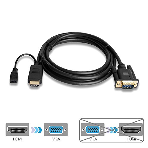 gofanco® Active HDMI to VGA Adapter with Audio - Black MALE to FEMALE with 3 Feet Micro USB Power Cable for HDMI enabled desktops and laptops to connect to VGA displays