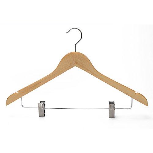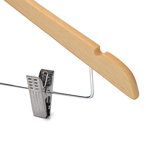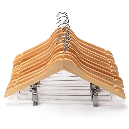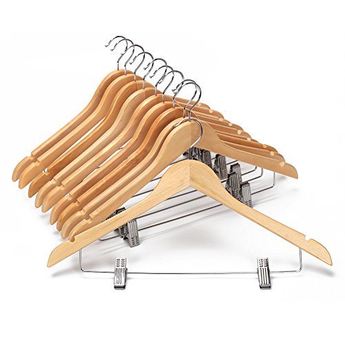 -. Title : JS HOME Solid Wooden Suit Hangers Natural Finish with Anti-rust Pant Clips, 10 Pack