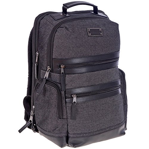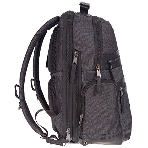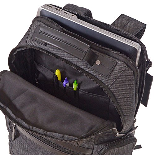 -. Title : Renwick Business Backpack with Genuine Leather Trim, Black Denim