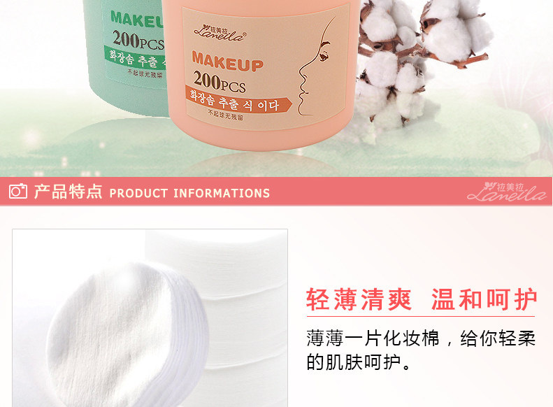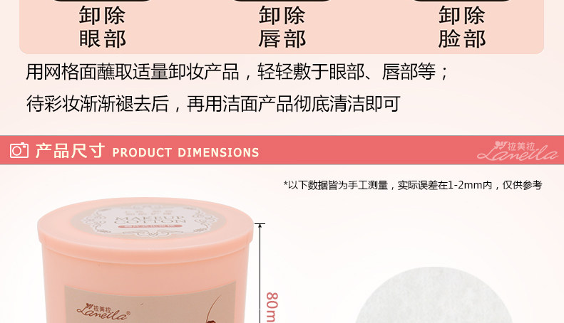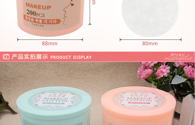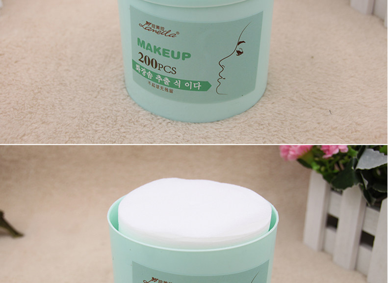 拉美拉 200片圆形 化妆棉 卸妆棉圆片薄款 胶盒装 化妆工具